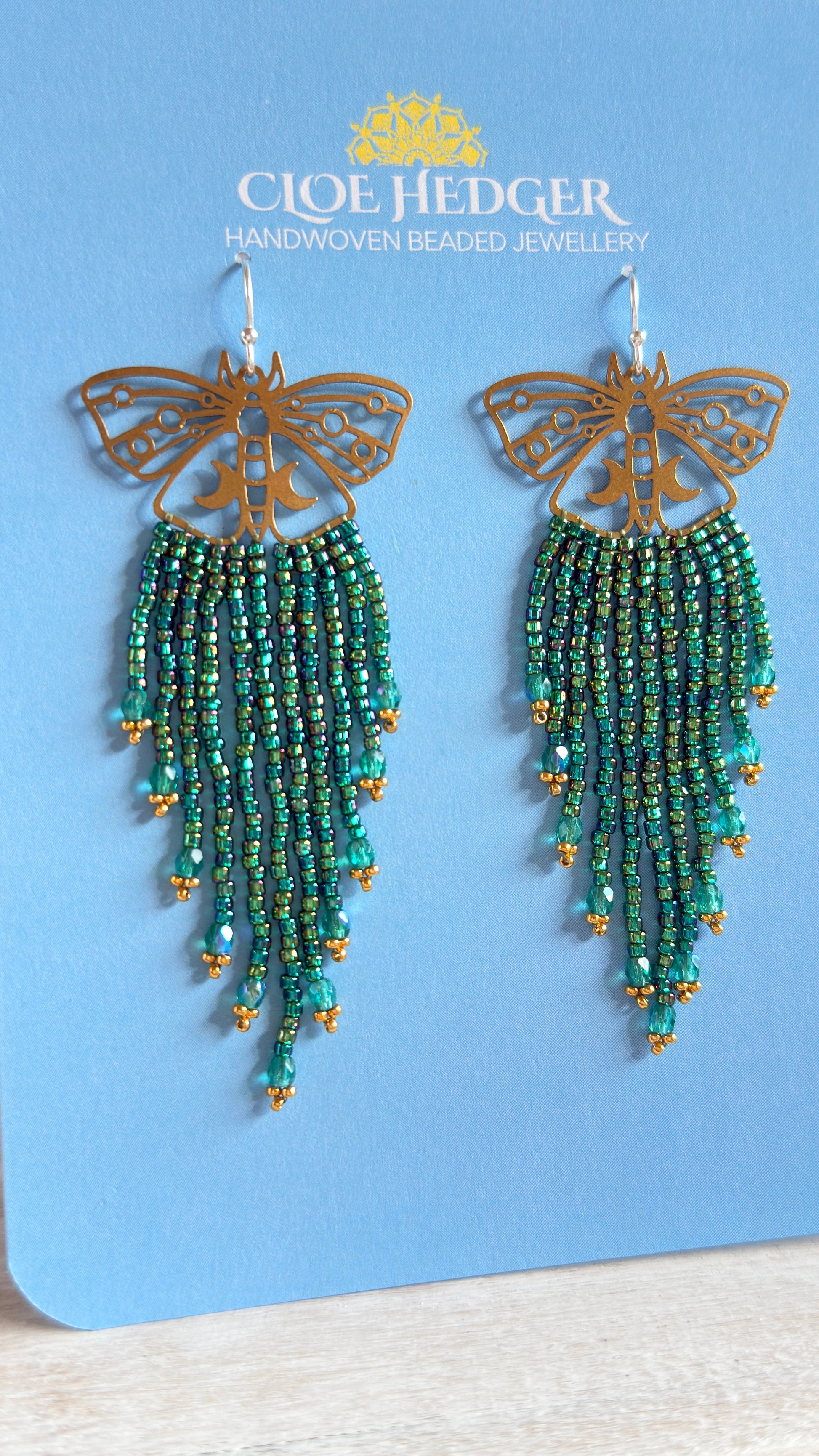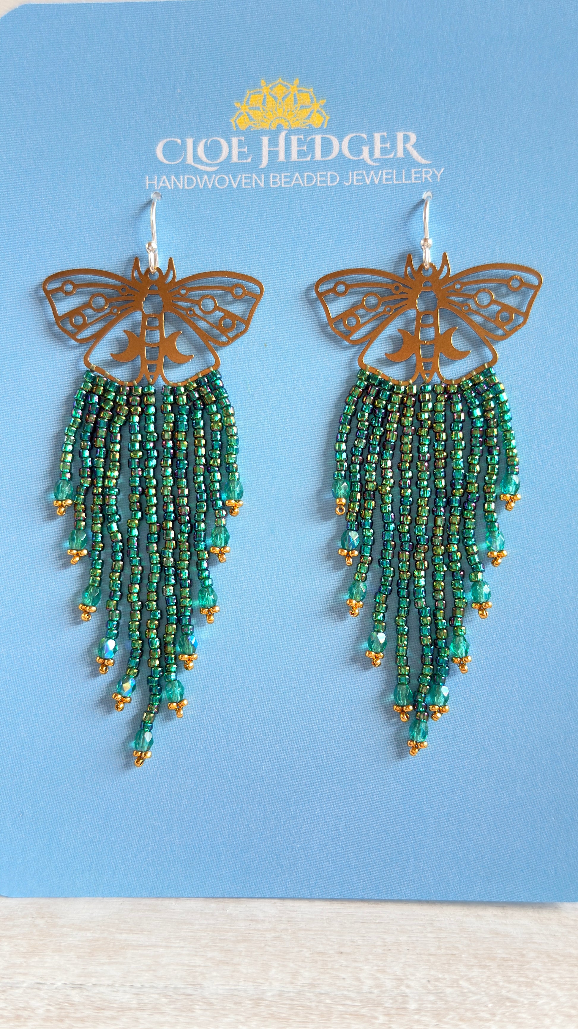 Handwoven beaded fringe earrings. Made with Japanese Miyuki glass beads.
