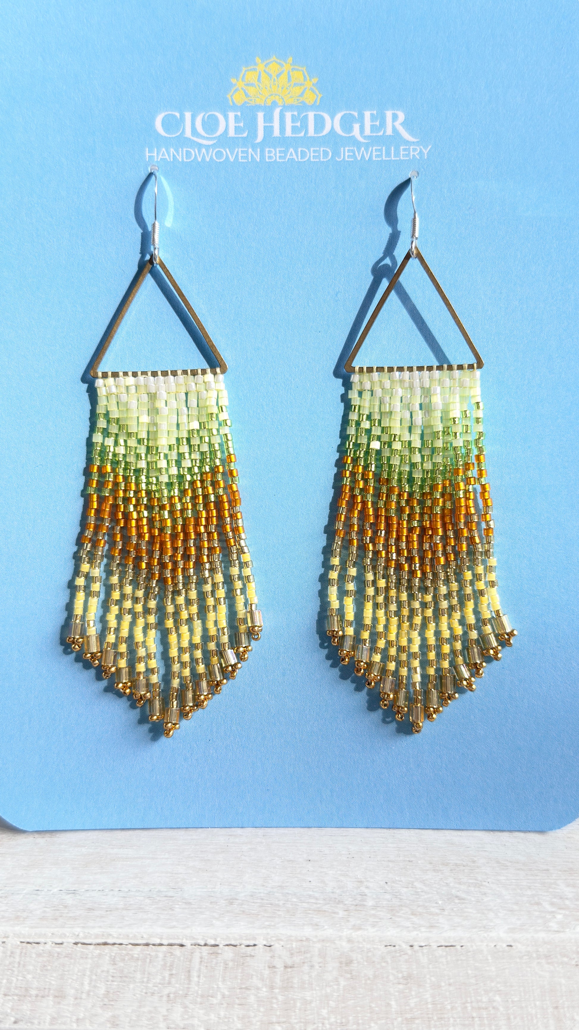 Handwoven beaded fringe earrings. Made with Japanese Miyuki glass beads.